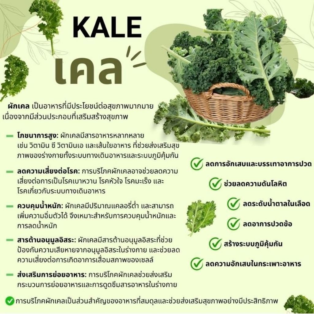 ต่อร่างกาย เคลประกอบด้วยคลอโรฟิลล์ ปรับสมดุลร่างกาย ช่วยให้นอนหลับสนิท ดีต่อระบบขับถ่าย มีวิตามิน