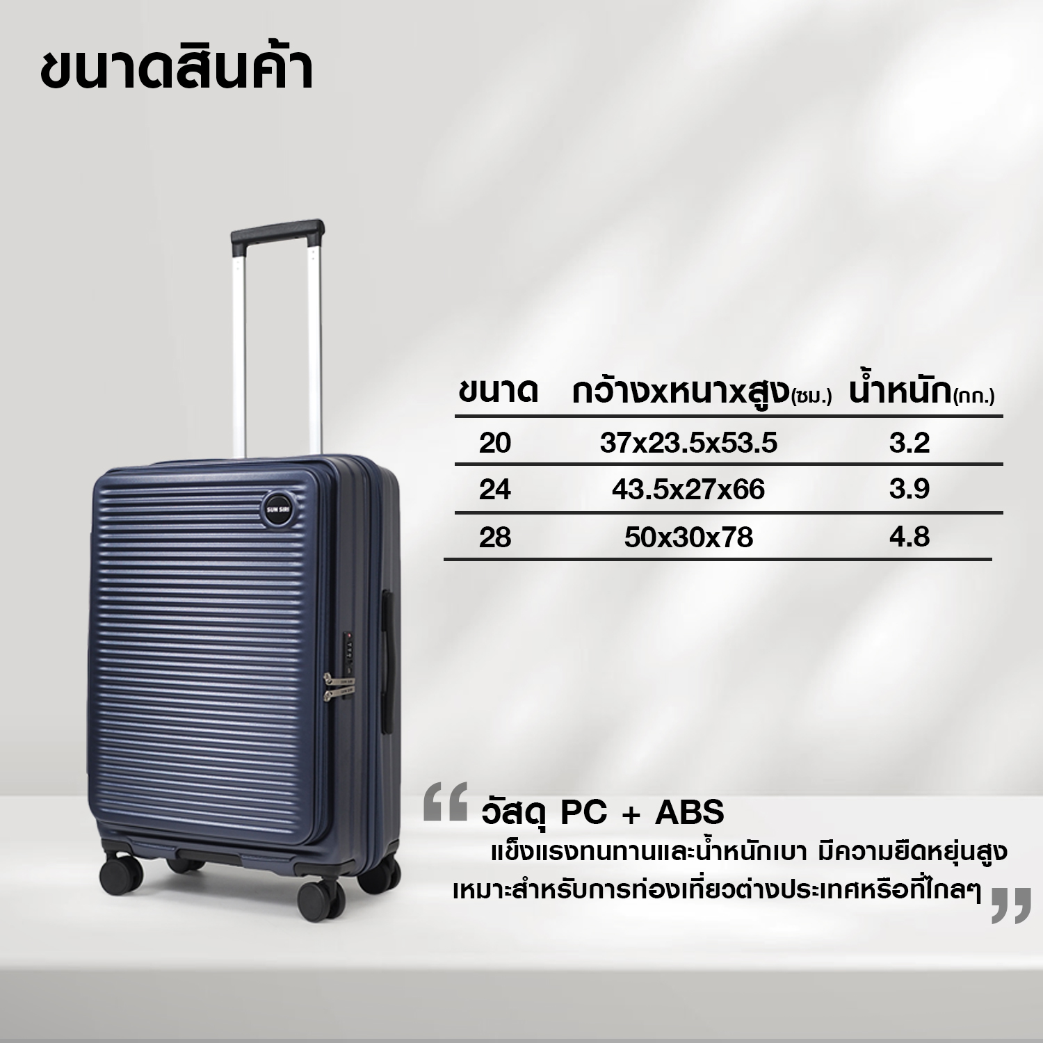 SUN SIRI กระเป๋าเดินทาง PC+ABS เปิดด้านหน้า 4 ล้อคู่ 360 ํ รุ่น 1008